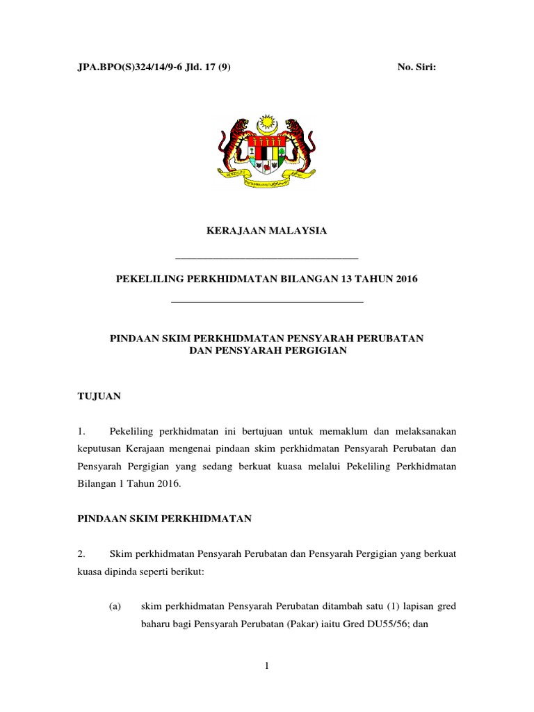 Pp Bil 13 2016 Pekeliling Pindaan Skim Perkhidmatan Pensyarah Perubatan Dan Pensyarah Pergigian Pekeliling Terbaru Kerajaan